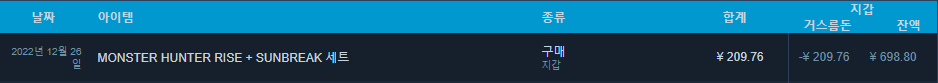 12월 26일 MONSTER HUNTER RISE + SUNBREAK 세트를 약 4만원 정도에 구매했다.