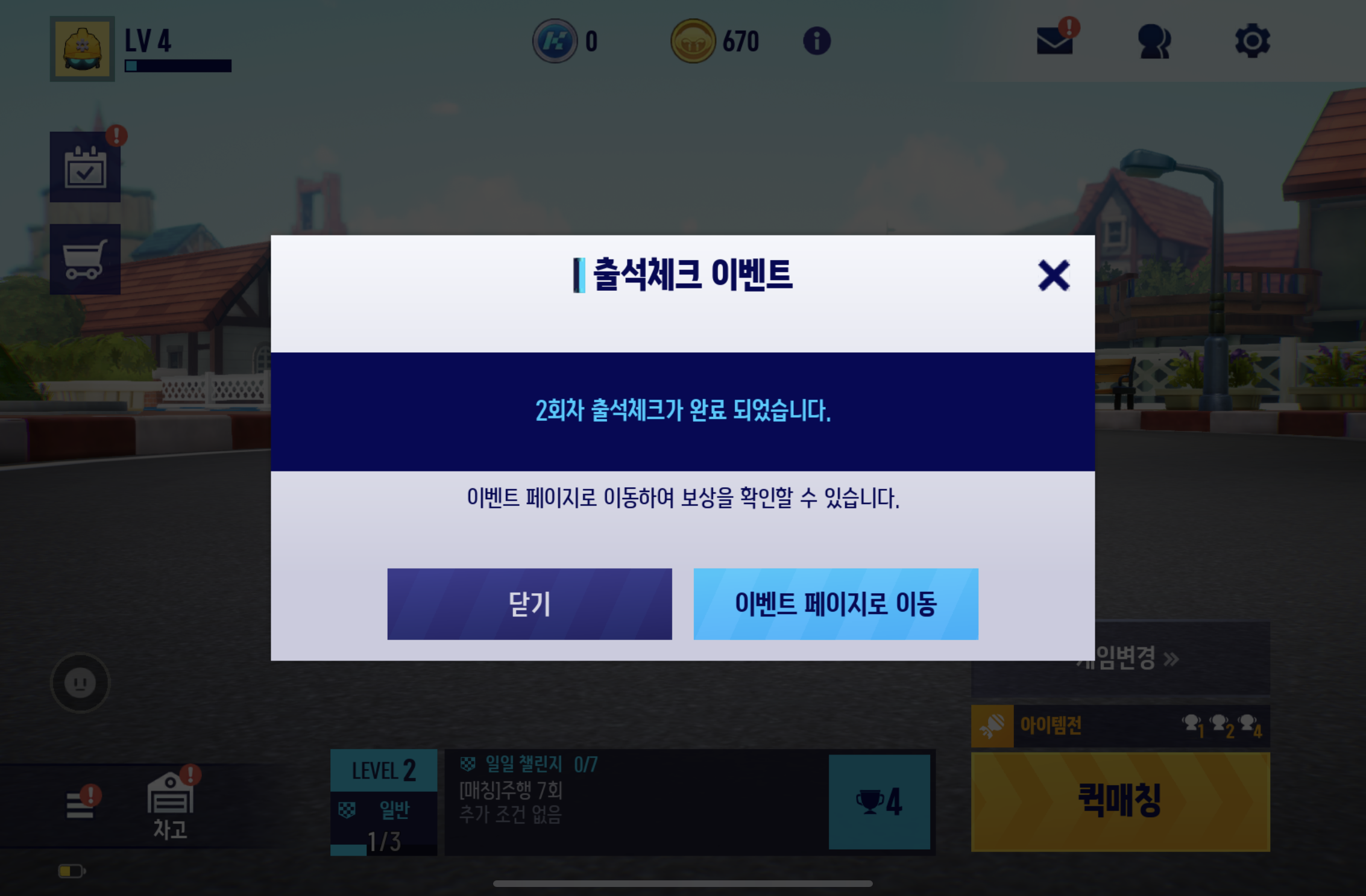 오늘 접속했더니 출석 체크 2일차 보상도 준다