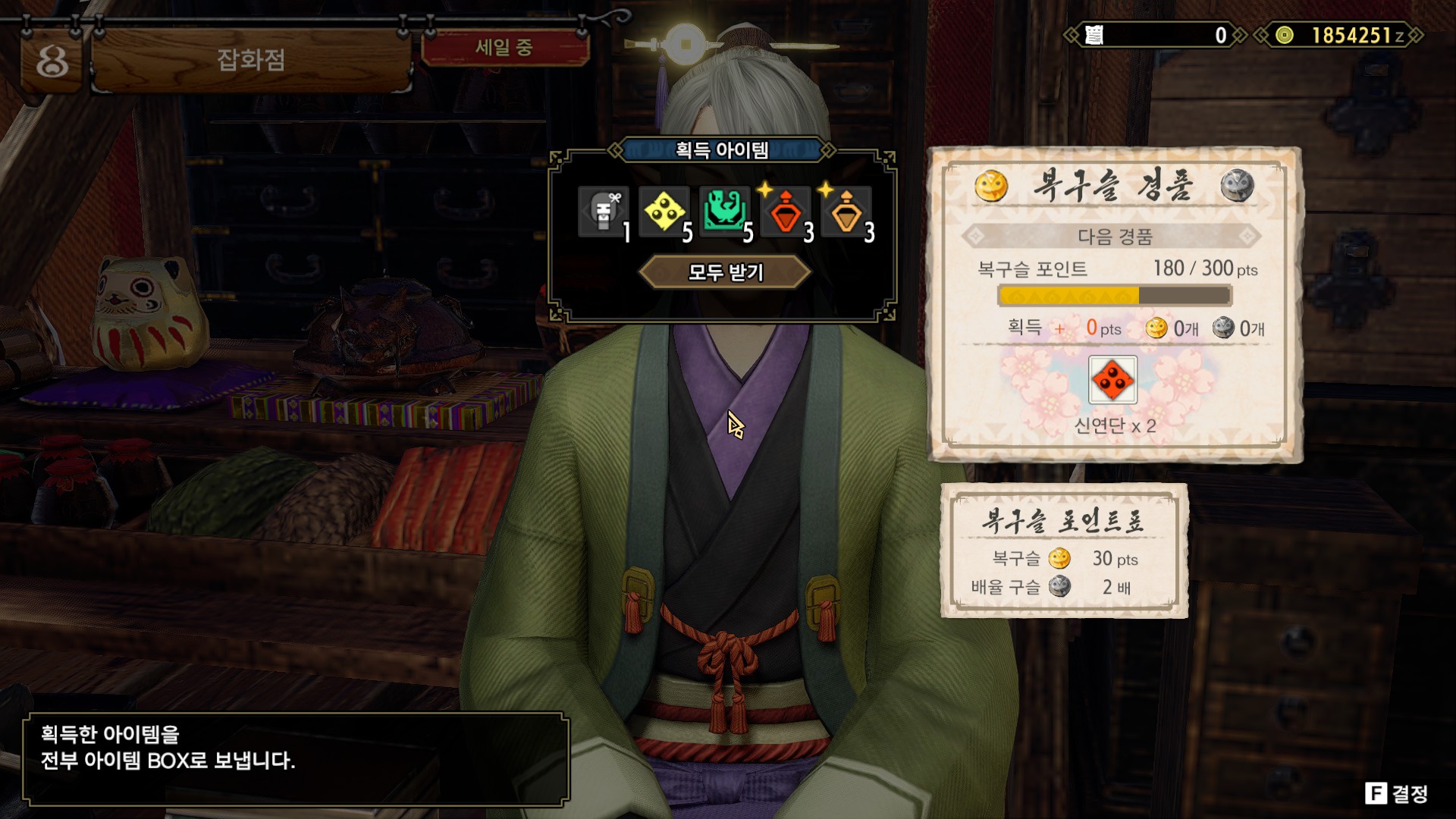 그럴때 잡화점에 가면 추첨 이라는 메뉴가 있는데 이걸 돌리면