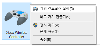 장치 리스트에서 연결되어있는 Xbox Wireless Controller 또는 자신이 사용하는 콘트롤러 위에서 마우스 오른쪽 클릭.