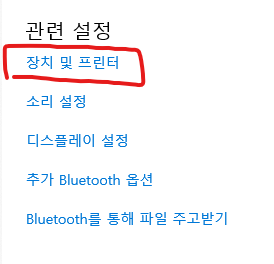 장치에서 하단에 있는 장치 및 프린터 클릭