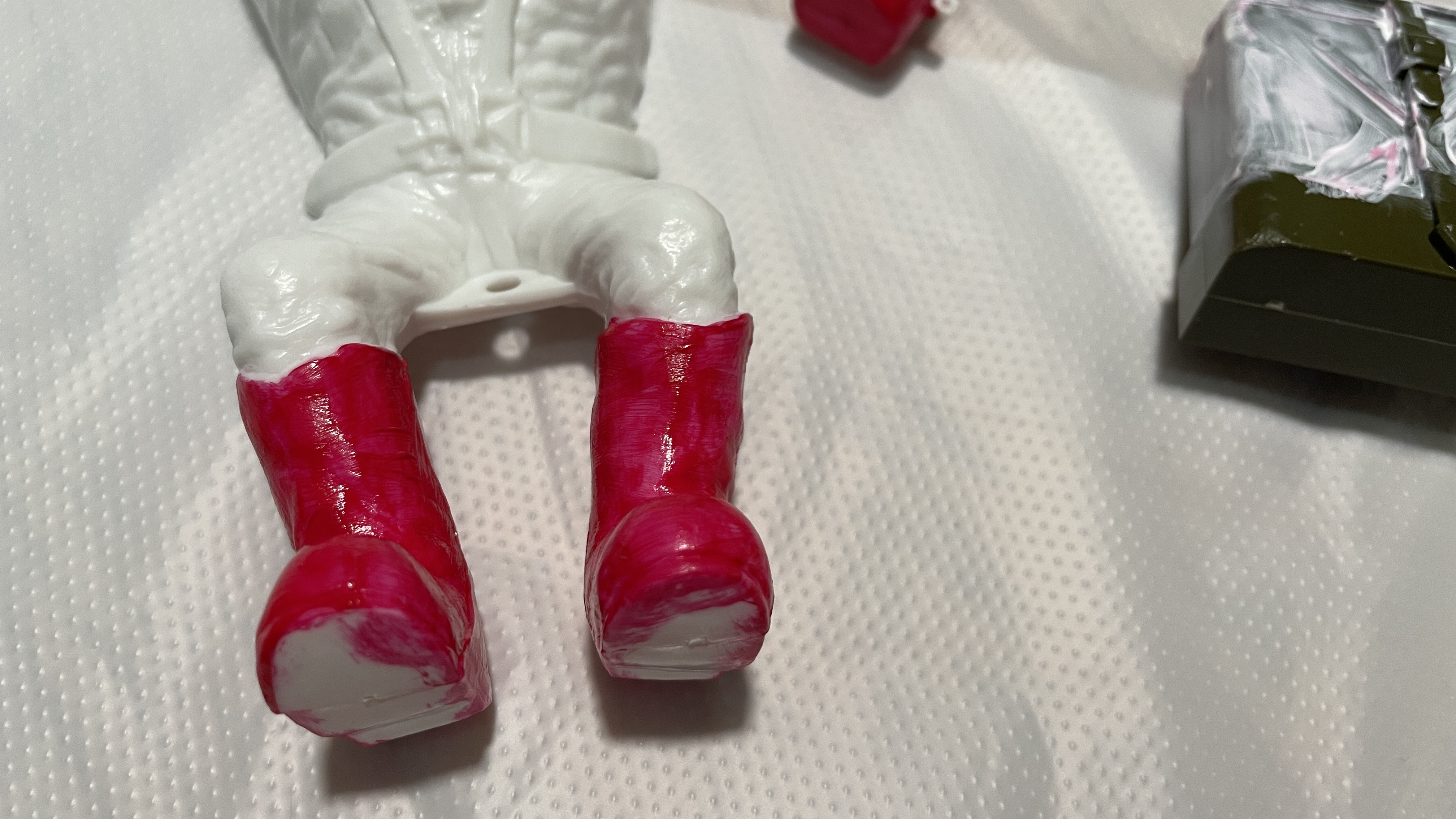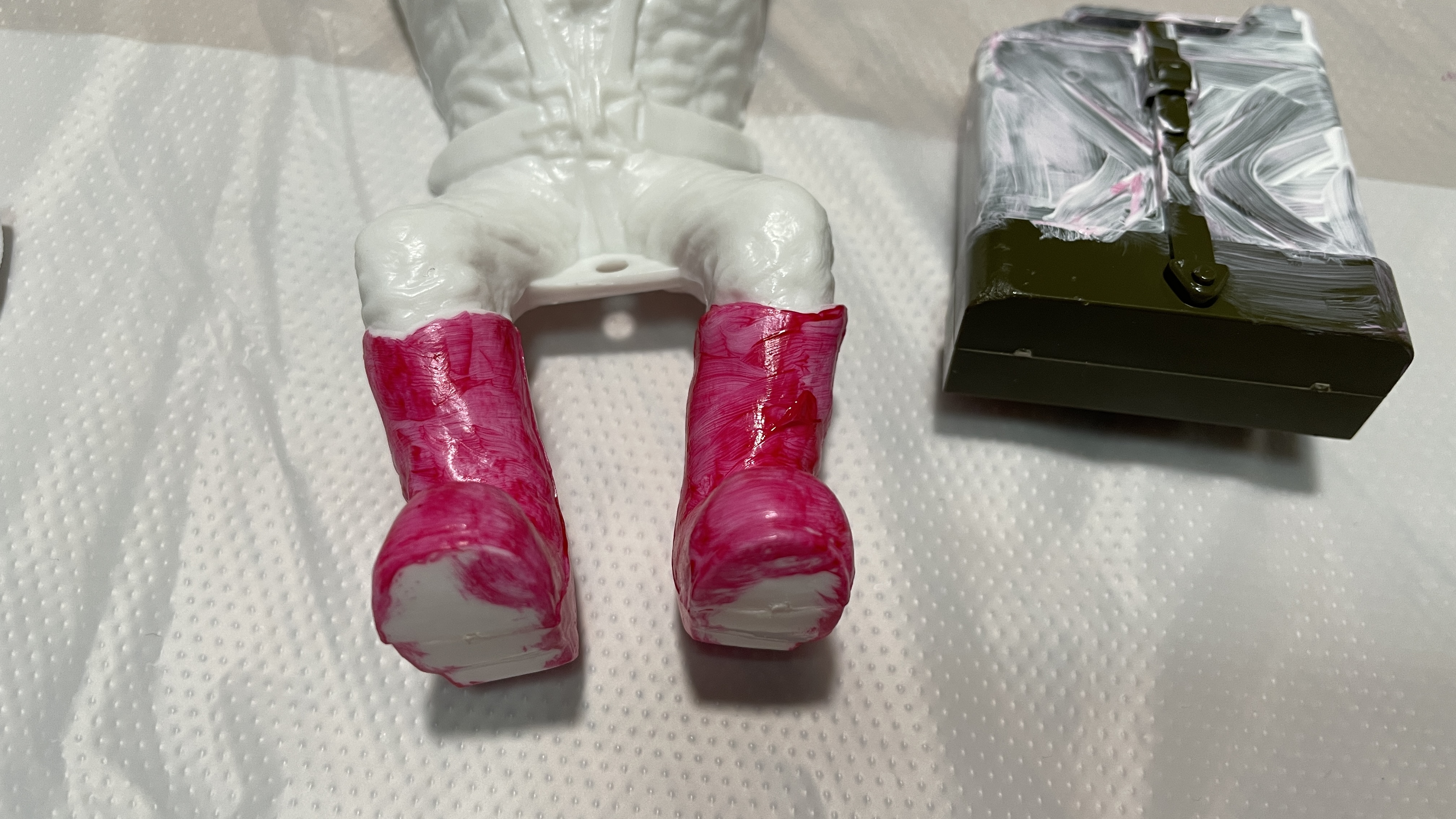어두운 표면에 바로 색칠하면 아크릴 물감이라도 색이 안나온다. 먼저 흰색으로 칠하거나 아니면 프라이머 서페이서로 먼저 밑색 작업을 하고 칠해야 할 것 같다.