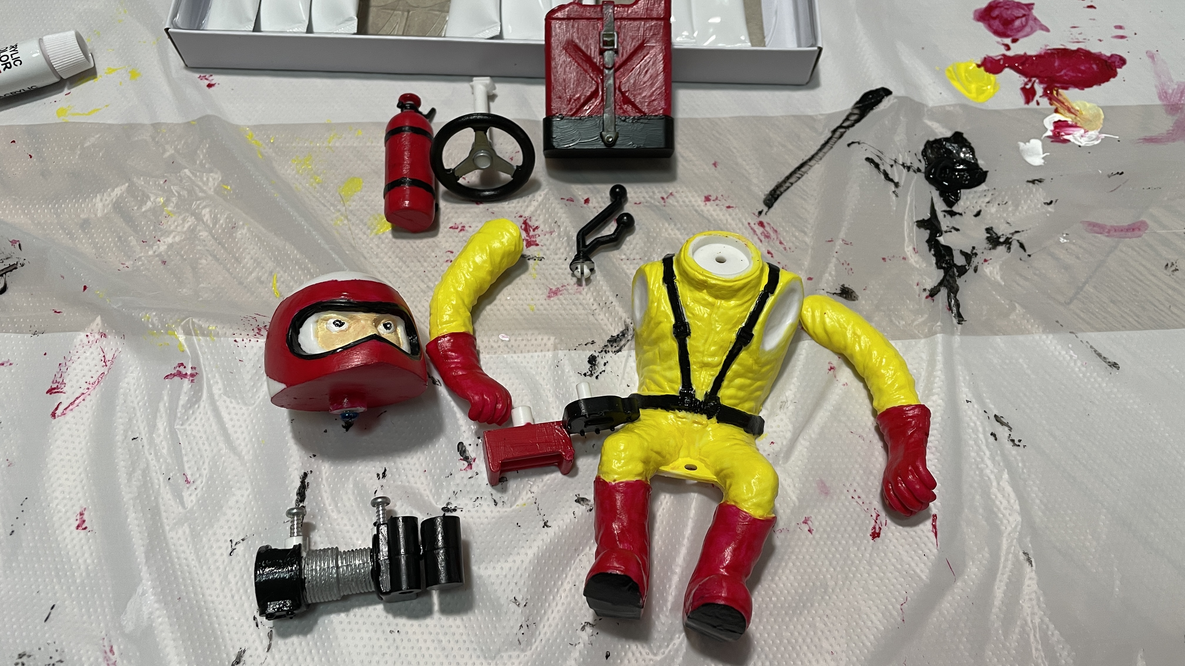다이소 아크릴 물감으로 와일드 윌리 피규어 도색하고 다이소 유광 바니쉬에 물 섞어 마무리, RC카 바디는 락카로 도색했다.