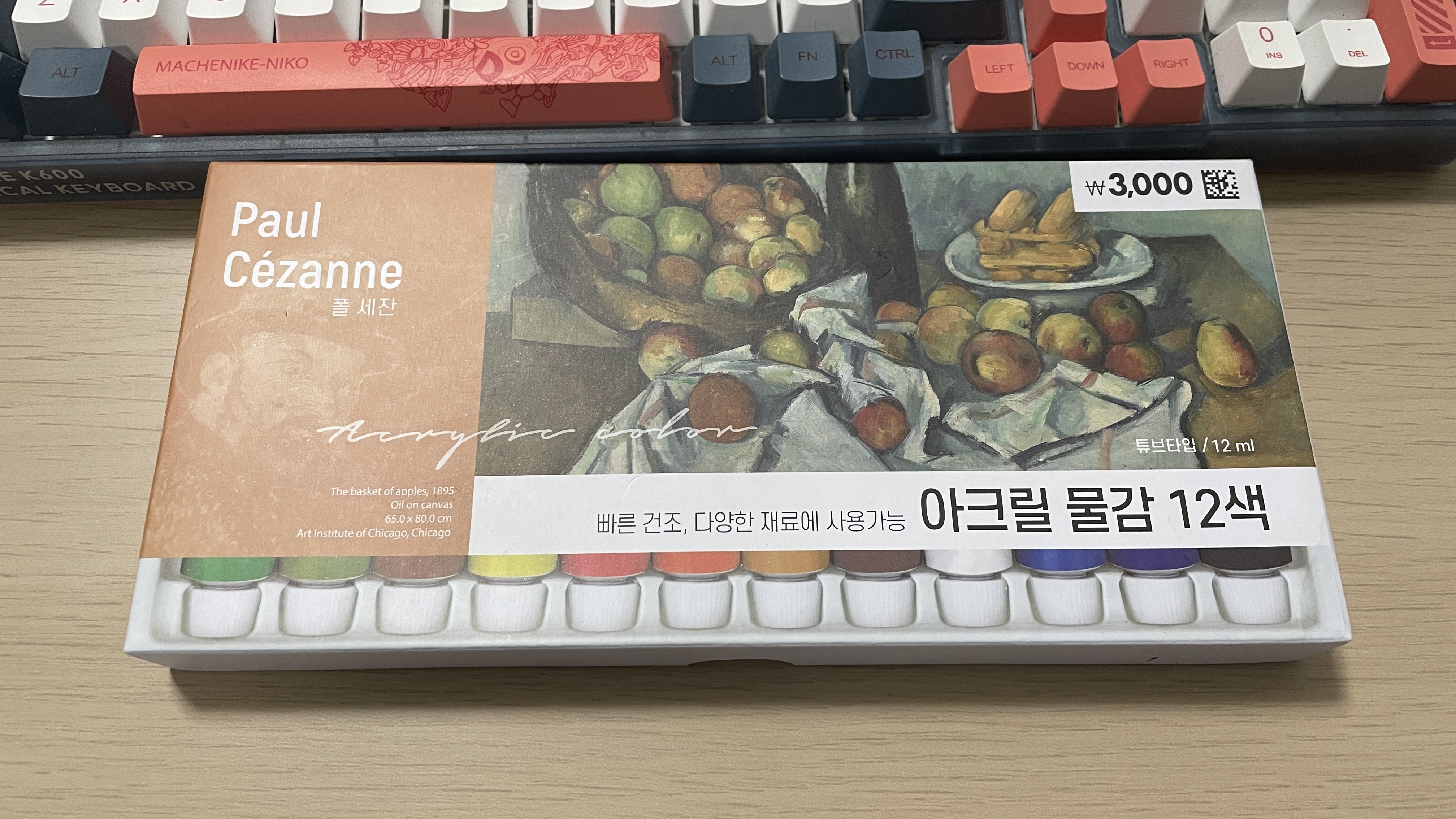 다이소 폴 세잔 아크릴 물감 12색 3000원에 판매했는데 지금은 단종 된 것 같기도 한데 잘 모르겠다.