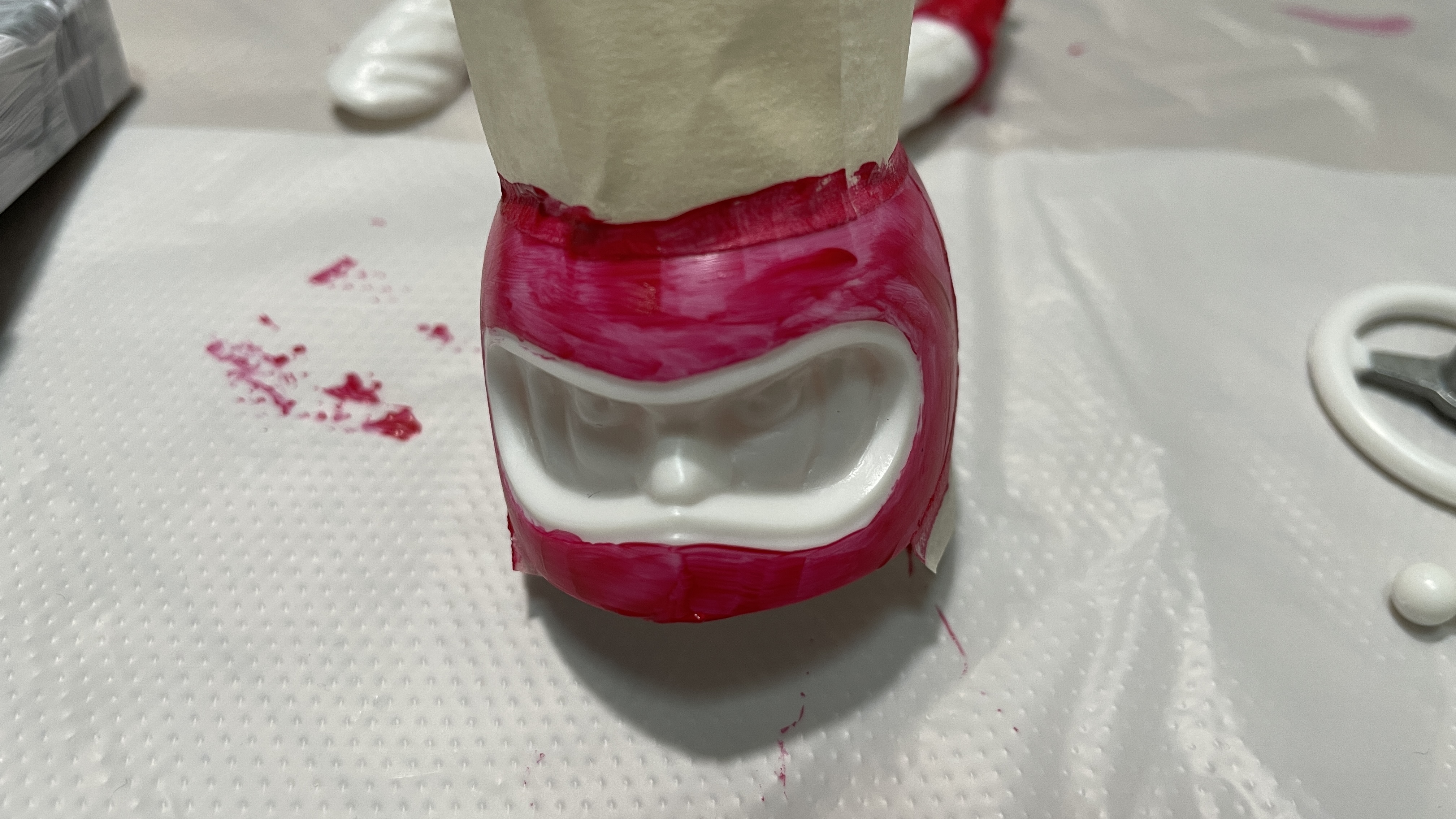 머리에 종이 테이프를 감고 칠했다. 윌리 얼굴 그리기가 상당히 걱정되었다.