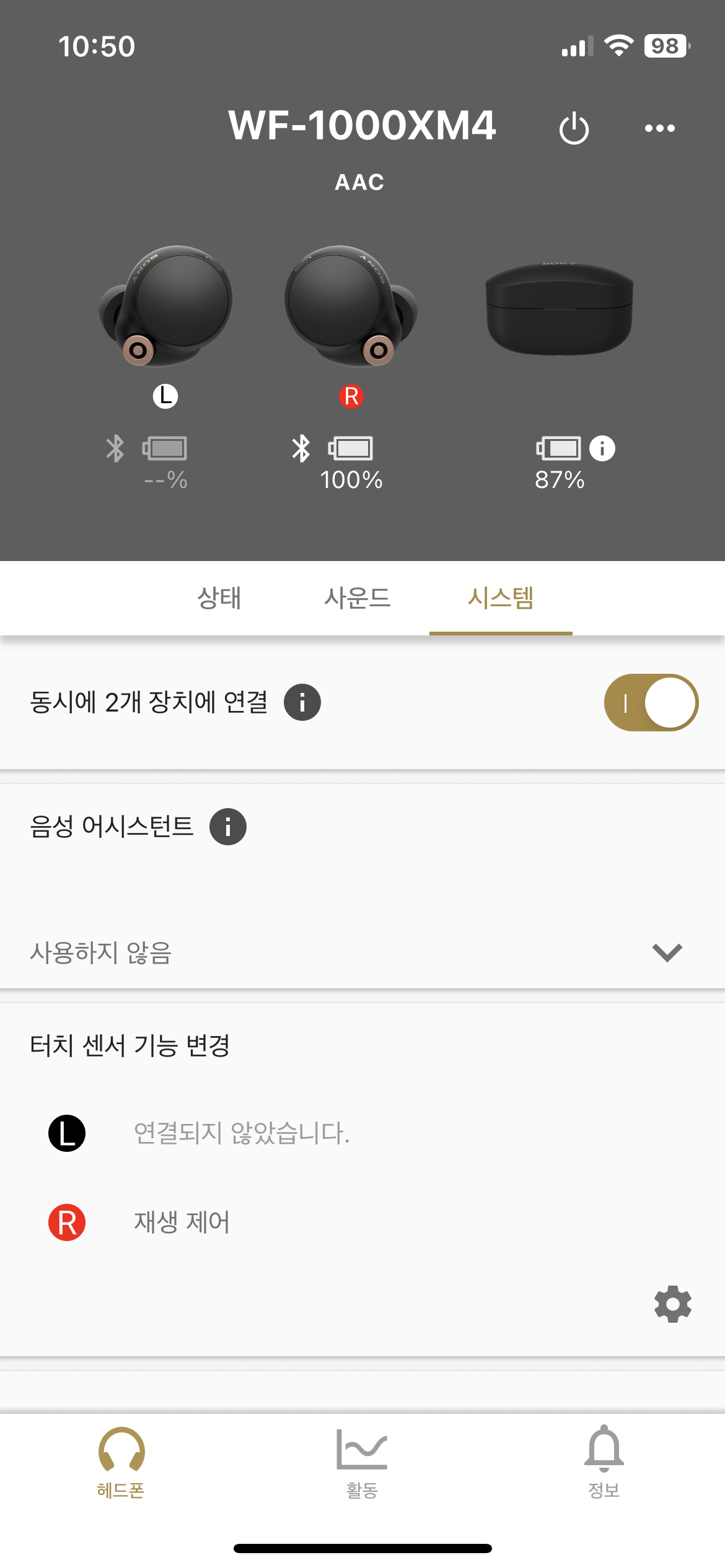 소니 WF 1000XM4 이어폰은 멀티페어링만 지원했다.