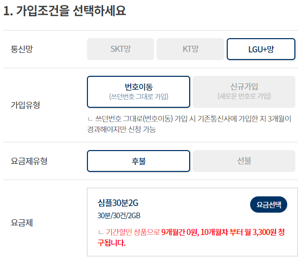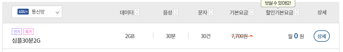 내가 이번에 신청한 요금제는 LGU+의 심플30분2G
