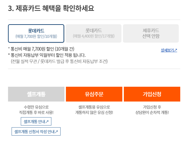 개통은 가입신청으로 처리했다. 유심주문의 경우 유심을 먼저 받고 개통하는 방식이고 가입신청의 경우 유심을 활성화하고 집으로 유심을 보내준다. 그래서 요금청구가 신청일로 부터 시작된다.