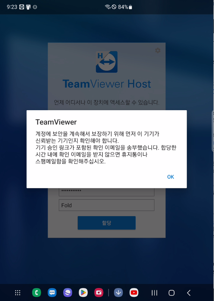 동의를 해줘야 원격제어 가능한듯.